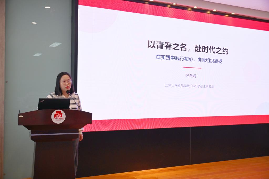 硕士党支部张希娟作“以青春之名,赴时代之约”党课第二讲。她结合自身成长经历,围绕志愿服务、创新竞赛与实习就业三个方面作交流分享。她以长期参与“青芽食育”志愿服务为切入点,阐述了在服务社会中坚定理想信念的过程;通过创新竞赛与科研实践,分享了党员在攻坚克难和团队协作中的责任担当;并结合实习与求职经历,强调党员先进性应体现在专业能力与踏实作风中,号召青年学子在实践中锤炼本领,在奉献中践行初心使命。